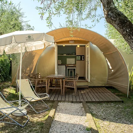 Weekend Glamping Resort biedt gasten de mogelijkheid om te ontspannen bij een seizoensgebonden buitenzwembad en ligt op 5 minuten te voet van Gardameer. Het resort biedt een bubbelbad en bevindt zich op circa 10 minuten rijden naar het Rimbalzello Adventure Park.